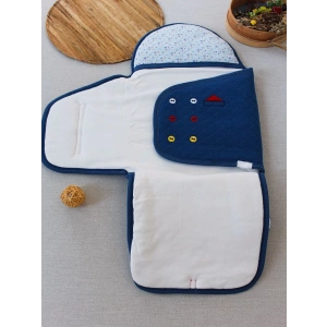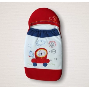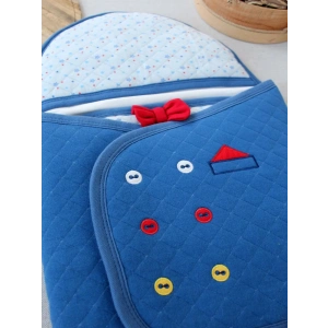 Yenidoğan Arabalı Aslan Nakışlı Fermuarlı Şapkalı Klasik Kundak Bebek Battaniyesi Mavi