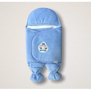 Yenidoğan Araba Nakışlı Fitilli Kadife Ayaklı Erkek Bebek Kundak Mavi