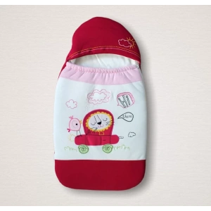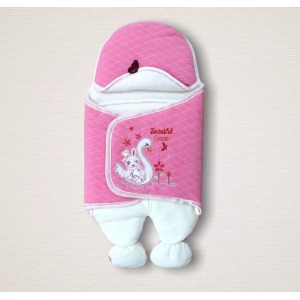 Yenidoğan Arabalı Aslan Nakışlı Fermuarlı Şapkalı Klasik Kundak Bebek Battaniyesi Pembe