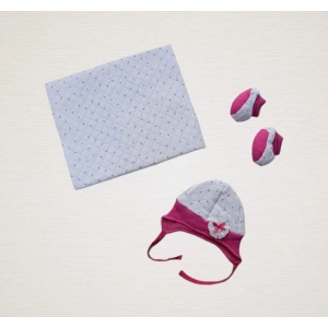 Yenidoğan Baskılı Double Face Şapka Ve Patikli 3Lü Bebek Battaniye Takımı Fuşya