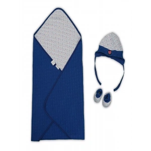 Yenidoğan Baskılı Double Face Şapka Ve Patikli 3Lü Bebek Battaniye Takımı Lacivert