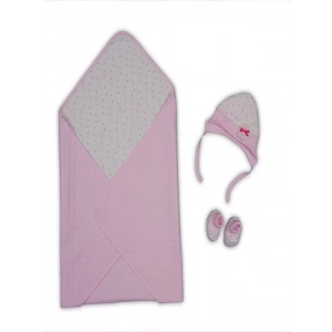 Yenidoğan Baskılı Double Face Şapka Ve Patikli 3Lü Bebek Battaniye Takımı Pembe