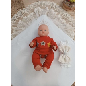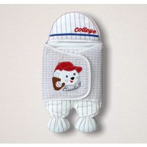 Yenidoğan Beyzbolcu Nakışlı Ayaklı Erkek Bebek Kundak Ekru