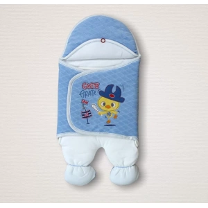 Yenidoğan Cesur Şovalye Civciv Nakışlı Şapkalı Erkek Ayaklı Kundak Bebek Battaniyesi Mavi