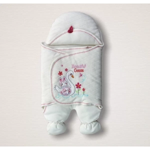Yenidoğan Çiçekli Ördek Nakışlı Şapkalı Kız Bebek Ayaklı Kundak Bebek Battaniyesi Ekru