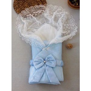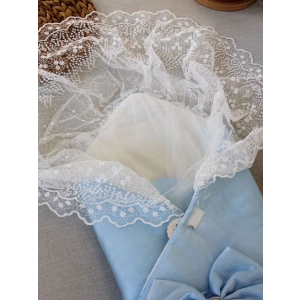 Yenidoğan Kumru İnci Fiyonk Kristal Parlak Duvaklı Kundak Bebek Battaniyesi Mavi
