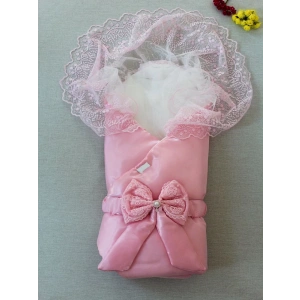 Yenidoğan Kumru İnci Fiyonk Kristal Parlak Duvaklı Kundak Bebek Battaniyesi Pembe