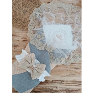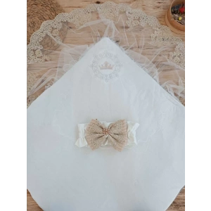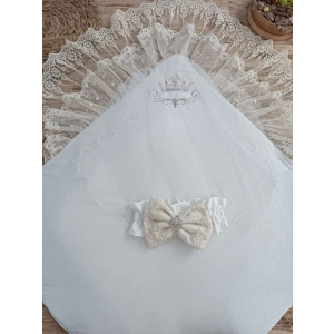 Yenidoğan Kumru İnci Fiyonk Kristal Parlak Duvaklı Kundak Bebek Battaniyesi Ekru