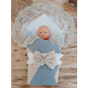 Yenidoğan Teri Nakışlı Prizma Taş Kundak Bebek Battaniyesi Bej