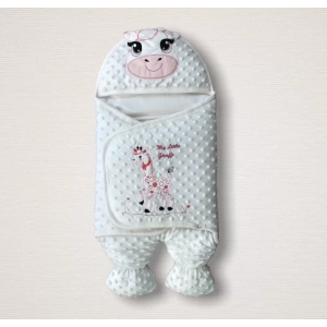 Yenidoğan Zürafa Nakışlı Şapkalı Kız Erkek Bebek Ayaklı Kundak Bebek Battaniyesi Pembe