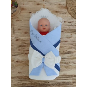 Yenidoğan Bal Peteği My Prince Nakışlı Delüks Kundak Bebek Battaniyesi Mavi