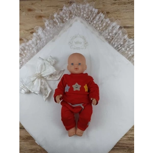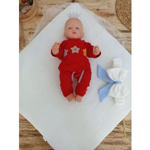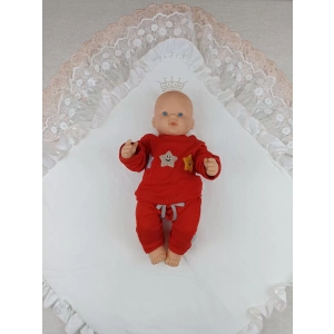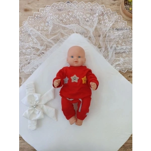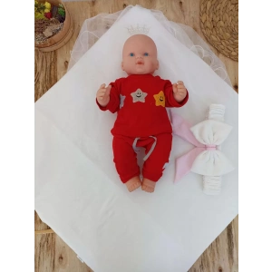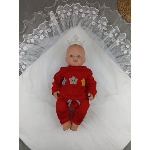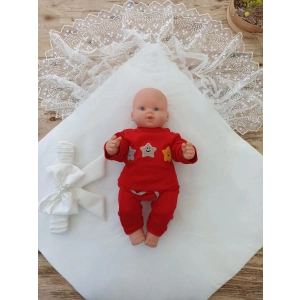 Yenidoğan İzmir İncisi Tül İşlemeli Pamuklu Fiyonklu Kundaklı Lüks 3Lü Alt Açma Seti