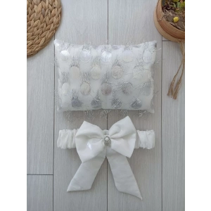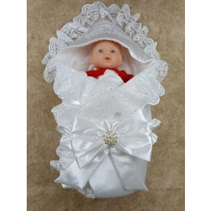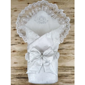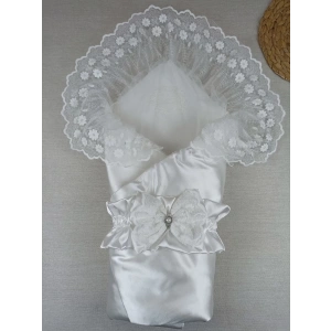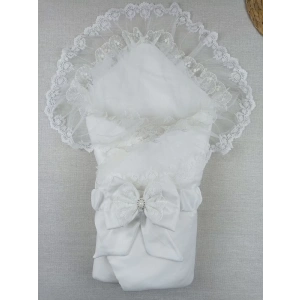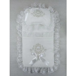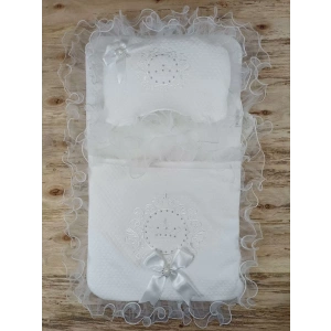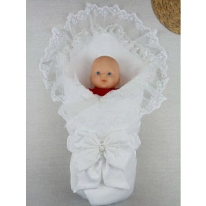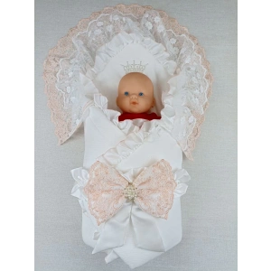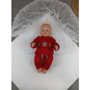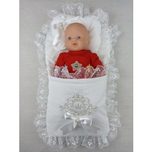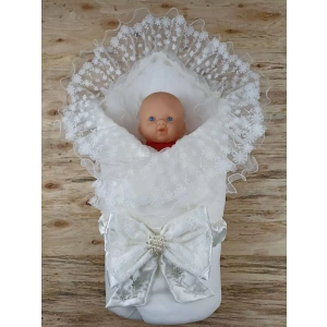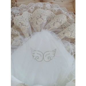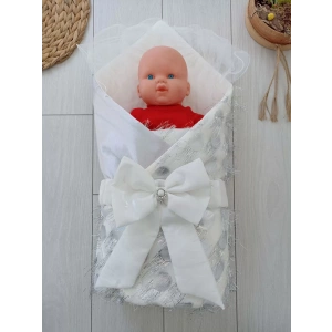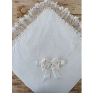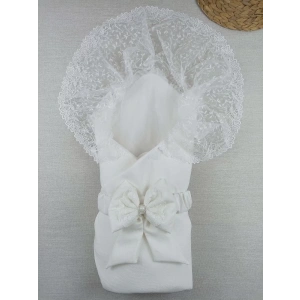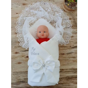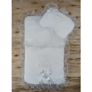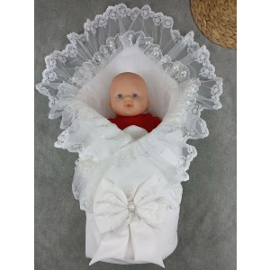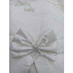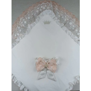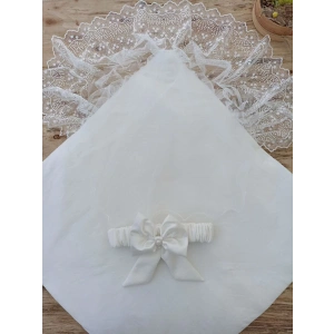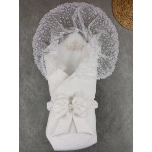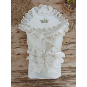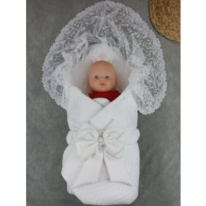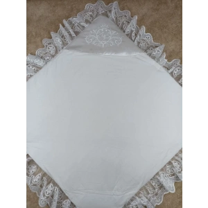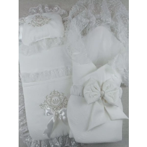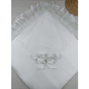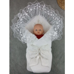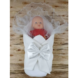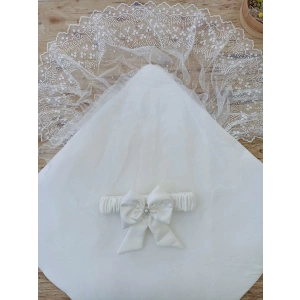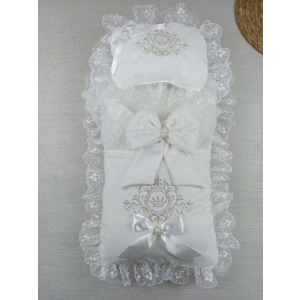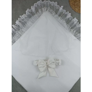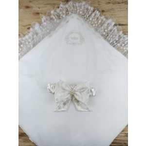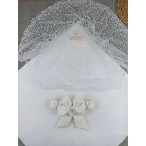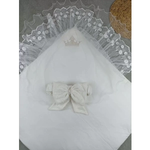 Yenidoğan Gelinlik Duvaklı Trilüks Kundak Bebek Battaniyesi Ekru