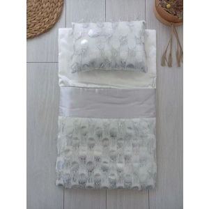 Yenidoğan Pırıltı Nakışlı İnci Delüks Kundak Bebek Battaniyesi Ekru