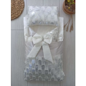Yenidoğan Pırıltı Nakış Detaylı Lüks Kundak Bebek Battaniyesi Ekru