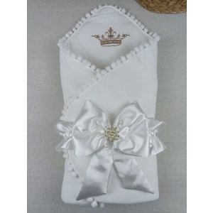 Yenidoğan Kumru Plazma Taçlı Lüks Kundak Bebek Battaniyesi Ekru
