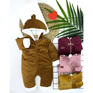 6-9-12-18 Ay Düğme Kapamalı Kulaklı Kapşonlu Triko Kumaş Kız Erkek Bebek Tulumu Bej