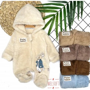 3-6-9-12 Ay Rabbit Tavşan Nakışlı Fermuar Kapamalı Patikli Tüylü Erkek Bebek Tulumu Bej