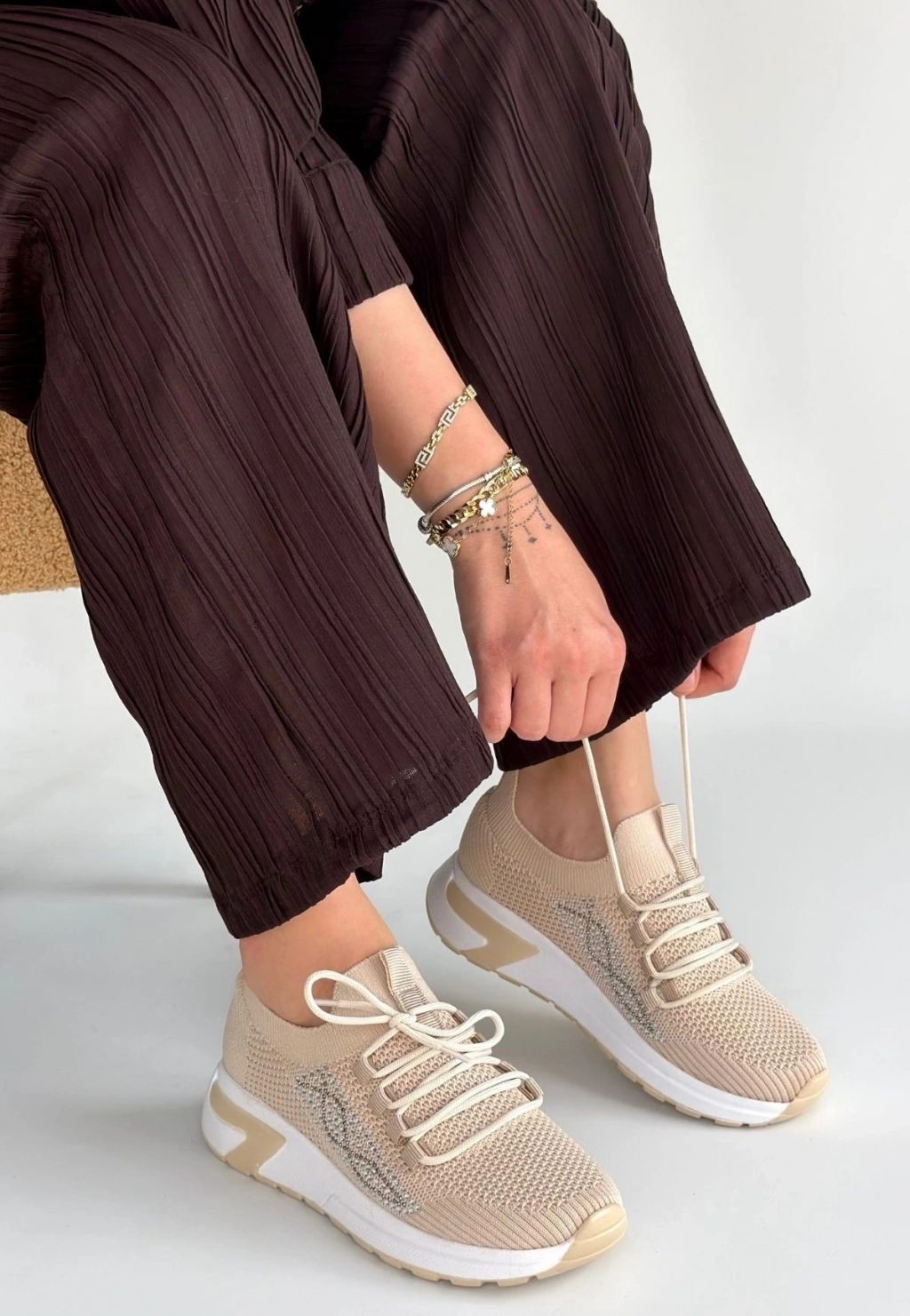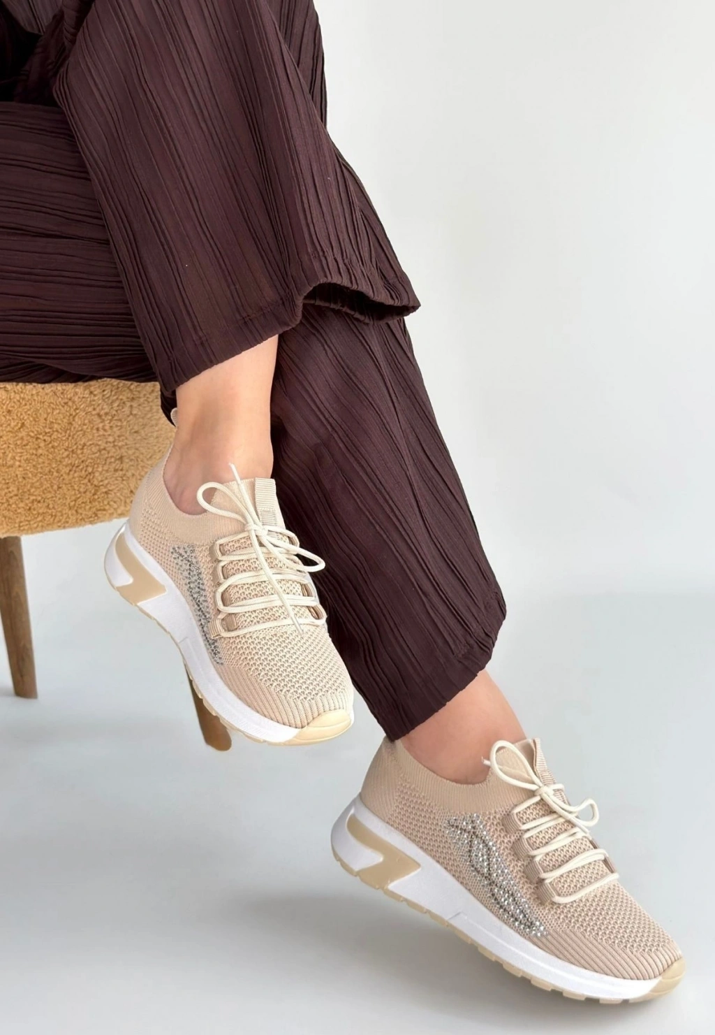 Feort Bej Triko Bağcıklı Spor Ayakkabı