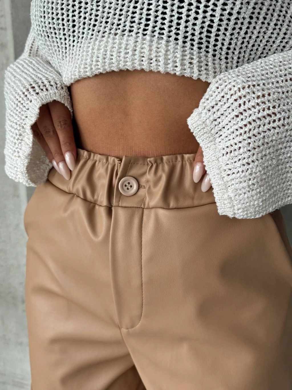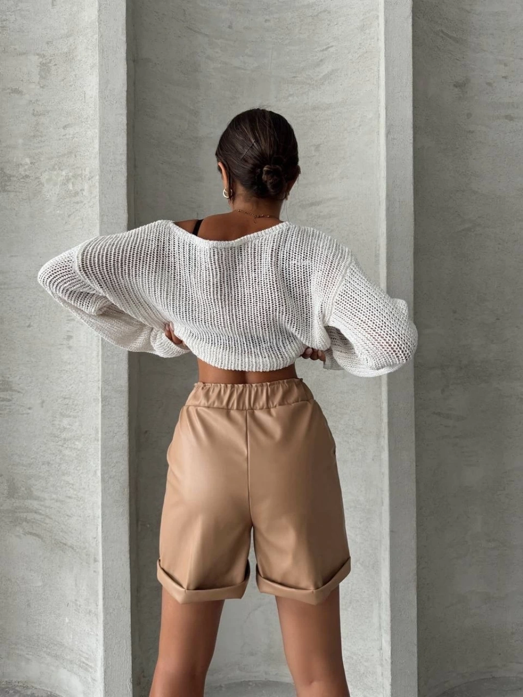 Müslin kumaş şort bağcıklı bej pt
