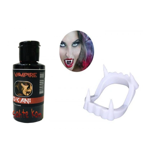 Beyaz Renk Çift Damak Takma Vampir Dişi ve 50 gr Tiyatro Kanı