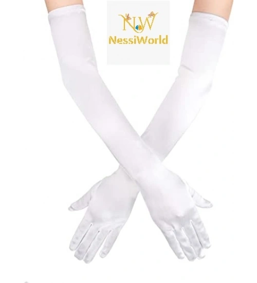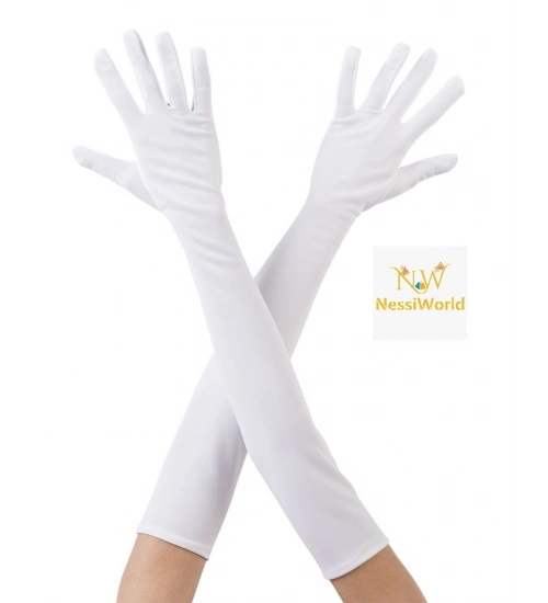 Beyaz Renk Dirseğe Kadar Uzun Kumaş Eldiven 40 cm