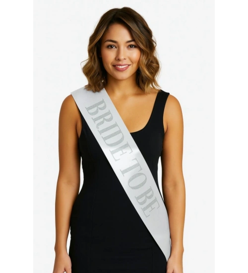 Beyaz Saten Üzerine Kalın Gümüş Yazılı Bride To Be Kuşağı