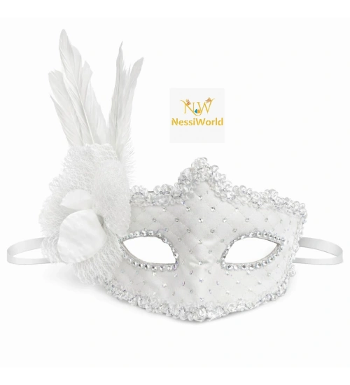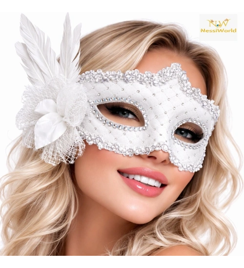 Beyaz Tüylü Venedik Lüks Balo Maskesi
