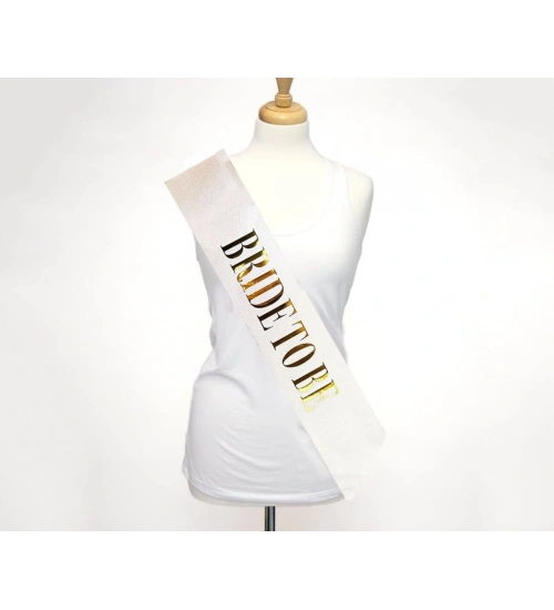 Beyaz Üzeri Altın Büyük Bride To Be Yazılı Simli Işıltılı Kuşak Kemer 10x80 cm