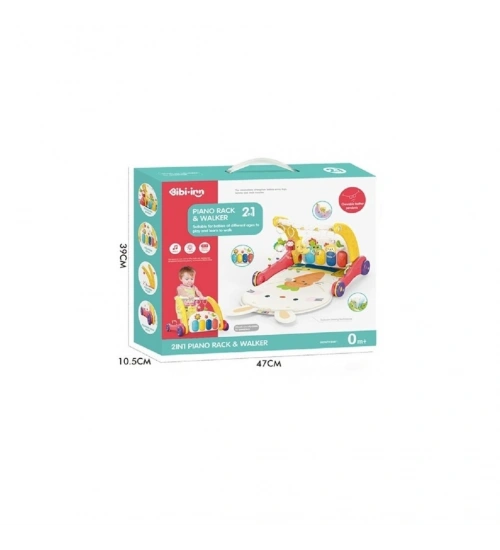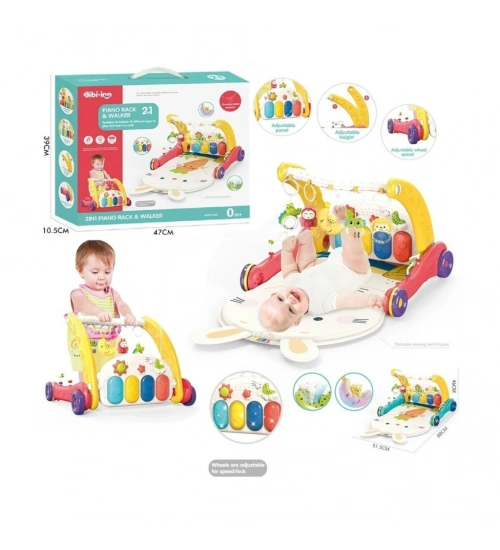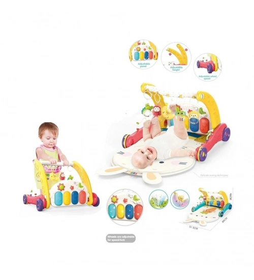 BIB6016- Piyanolu Bebek Yürüteci ve Tavşan Desenli Kırmızı Oyun Halısı 2 in 1