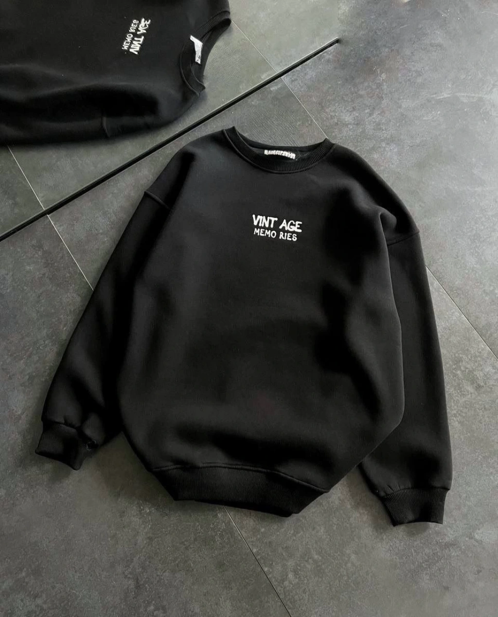 Kadın Üç İplik Düz Bisiklet Yaka SweatShirt - Siyah