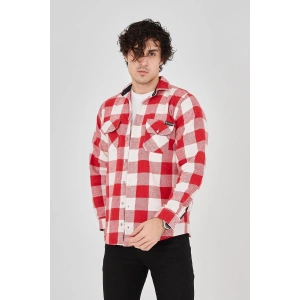 ERKEK ODUNCU GÖMLEK – UZUN KOLLU, ŞARDONLU KUMAŞ, KARELİ DESEN, REGULAR FİT, MANŞETLİ, ÇİFT CEPLİ, RAHAT GÜNLÜK BAHAR & KIŞ STİL - PEMBE