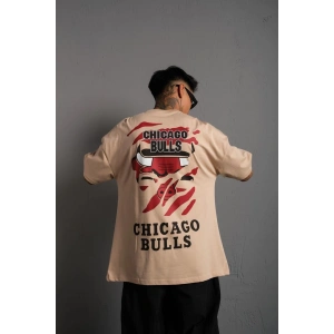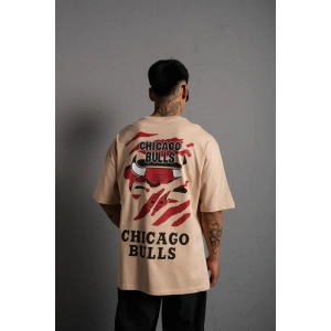ERKEK SIRT BASKILI A KALİTE OVERSİZE T-SHİRT - BEJ