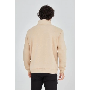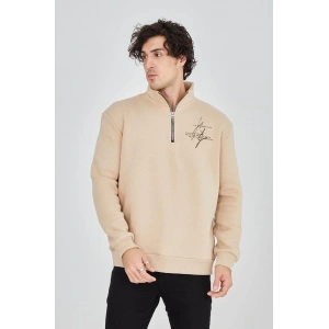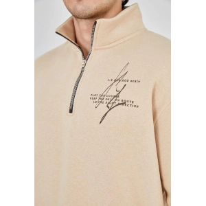 ERKEK YARIM FERMUARLI BASKILI SWEAT - BEJ