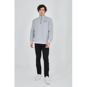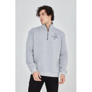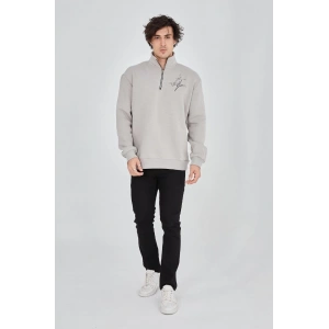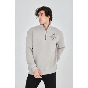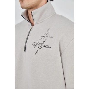 ERKEK YARIM FERMUARLI BASKILI SWEAT - BOYALI GRİ
