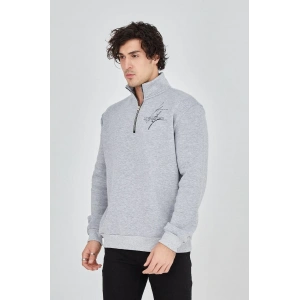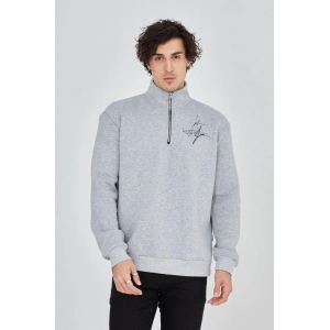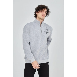 ERKEK YARIM FERMUARLI BASKILI SWEAT - GRİ