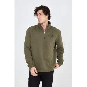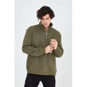 ERKEK YARIM FERMUARLI BASKILI SWEAT - YEŞİL