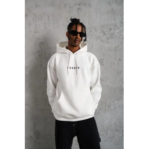 ERKEK ÜÇ İPLİK BASKILI KAPÜŞONLU SWEAT - BEYAZ