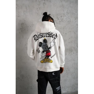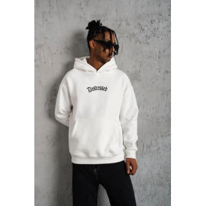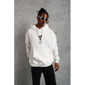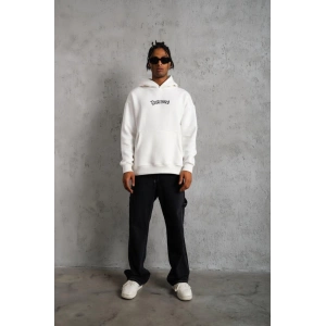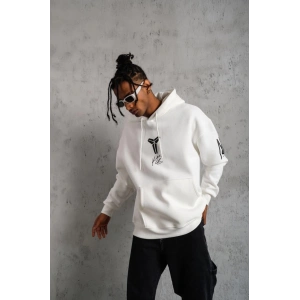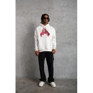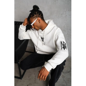 ERKEK ELDİVEN BASKILI KAPÜŞONLU SWEAT - BEYAZ