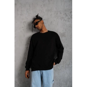 ERKEK DÜZ BİSİKLET YAKA SWEAT - SİYAH