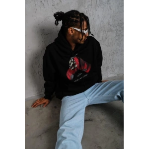 ERKEK ELDİVEN BASKILI KAPÜŞONLU SWEAT - SİYAH