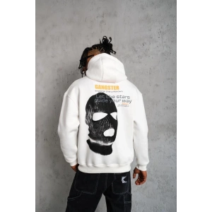 ERKEK KORDONLU MASKE BASKILI KAPÜŞONLU SWEAT - BEYAZ