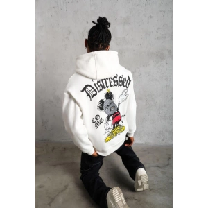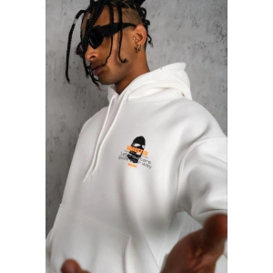 ERKEK BASKILI KAPÜŞONLU SWEAT - BEYAZ