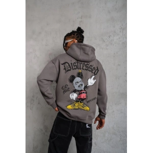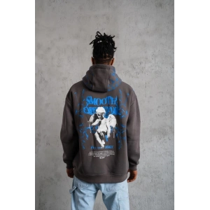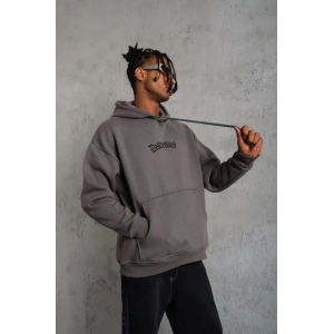 ERKEK YILDIRIM BASKILI KAPŞONLU SWEATSHİRT - GRİ