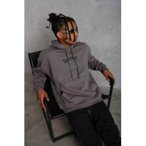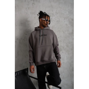 ERKEK ÜÇ İPLİK BASKILI KAPÜŞONLU SWEAT - GRİ