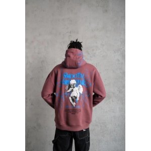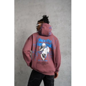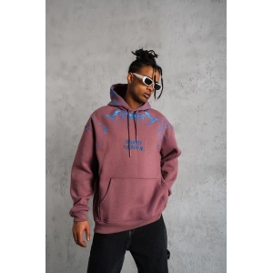 ERKEK YILDIRIM BASKILI KAPŞONLU SWEAT - GÜL KURUSU