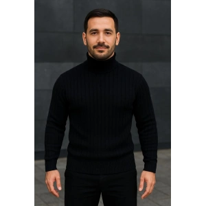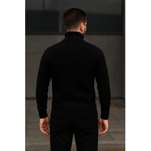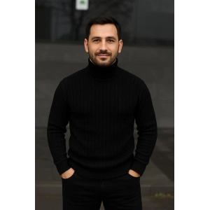 ERKEK BALIKCI YAKA BAĞAZLI TRİKO KAZAK PAMUKLU KALIN FİTİLLİ DOKUMA, REGULAR FİT UZUN KOLLU KIŞLIK MODEL - SİYAH