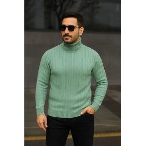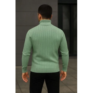 ERKEK BALIKCI YAKA BAĞAZLI TRİKO KAZAK PAMUKLU KALIN FİTİLLİ DOKUMA, REGULAR FİT UZUN KOLLU KIŞLIK MODEL - MİNT YEŞİLİ