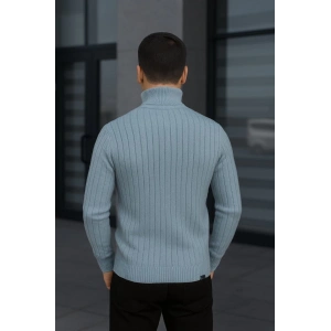 ERKEK BALIKCI YAKA BAĞAZLI TRİKO KAZAK PAMUKLU KALIN FİTİLLİ DOKUMA, REGULAR FİT UZUN KOLLU KIŞLIK MODEL - BEBE MAVİSİ