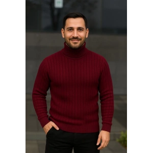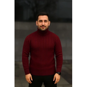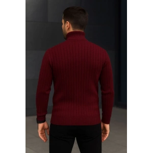 ERKEK BALIKCI YAKA BAĞAZLI TRİKO KAZAK PAMUKLU KALIN FİTİLLİ DOKUMA, REGULAR FİT UZUN KOLLU KIŞLIK MODEL - BORDO
